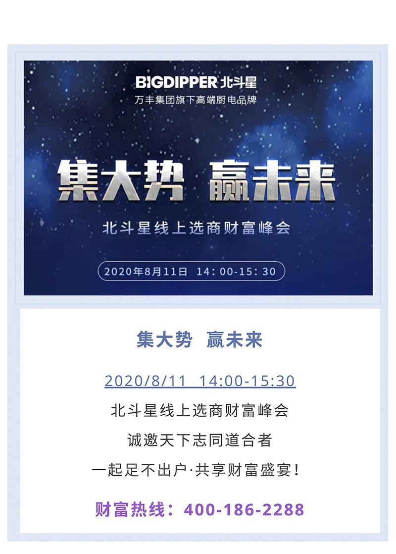 北斗星集成灶線上選商財富峰會將盛大開啟!